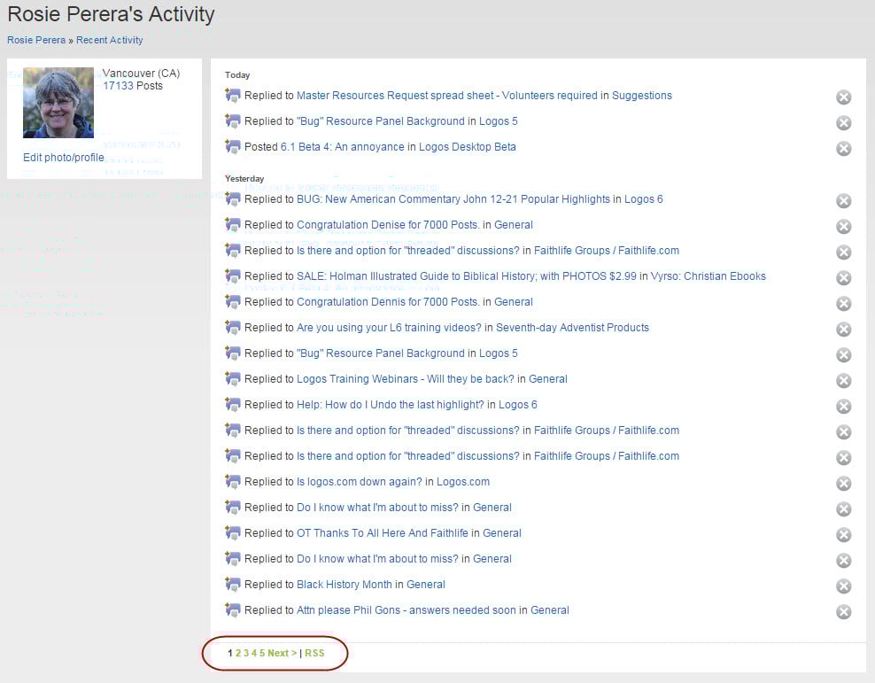 But if I try to page through my own posts from my profile, I get to page 5 and then that's it: