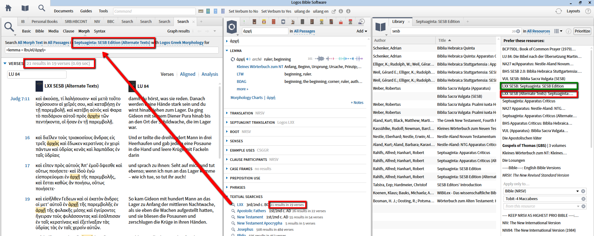 In case the "LXX Alternate Text" is the next highest prioritized (or only other available LXX in the library), this will lead to wrong result counts in the section: It shows 21 results in 19 verses, whereas the real count - in several LXX resources - is 215 results in 203 verses.