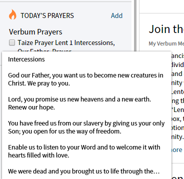1. I used three prayers that I established in the Verbum group to test the feature.