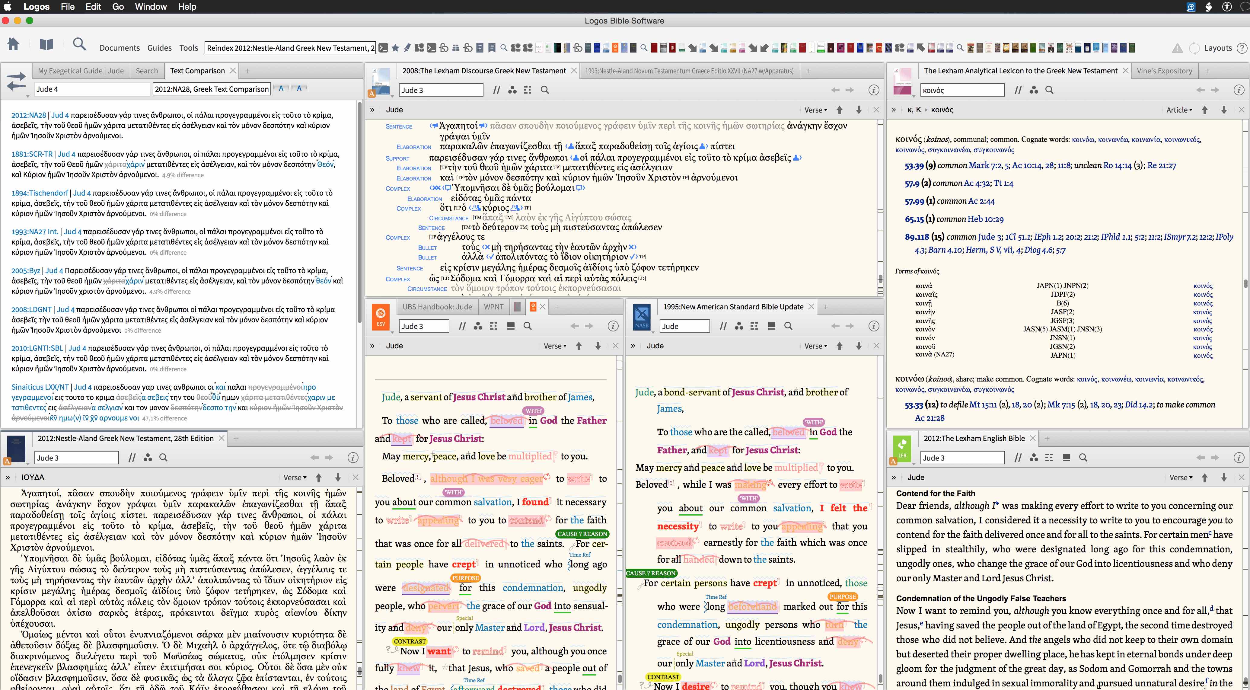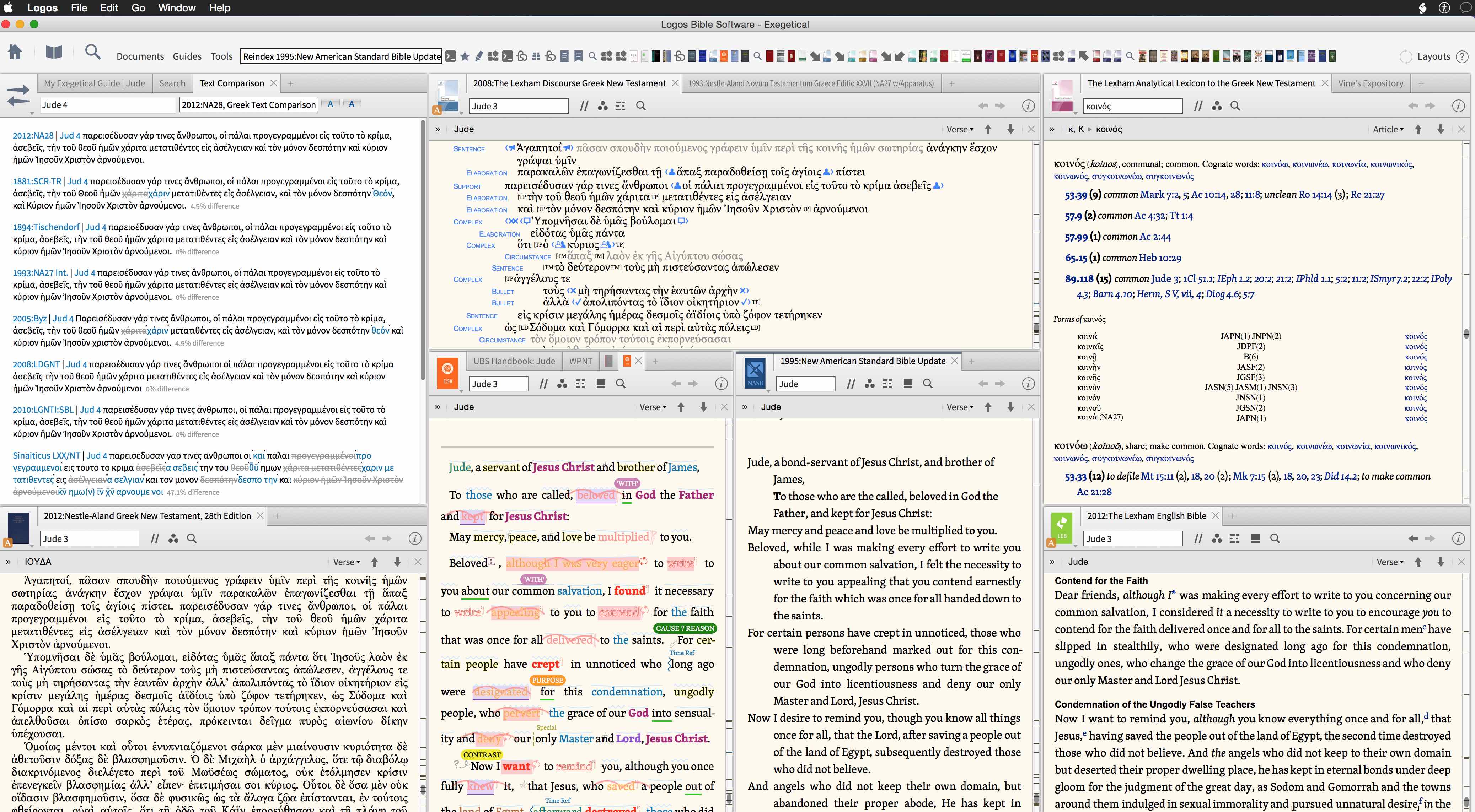 Opened Exegetical Layout using Logos 6.1 RC 2 on OS X 10.10.2 (5K iMac). All the tabs and panels in layout opened, but many resources lack visual filter highlighting. Used Rebuild Bible Index command followed by opening layout again.