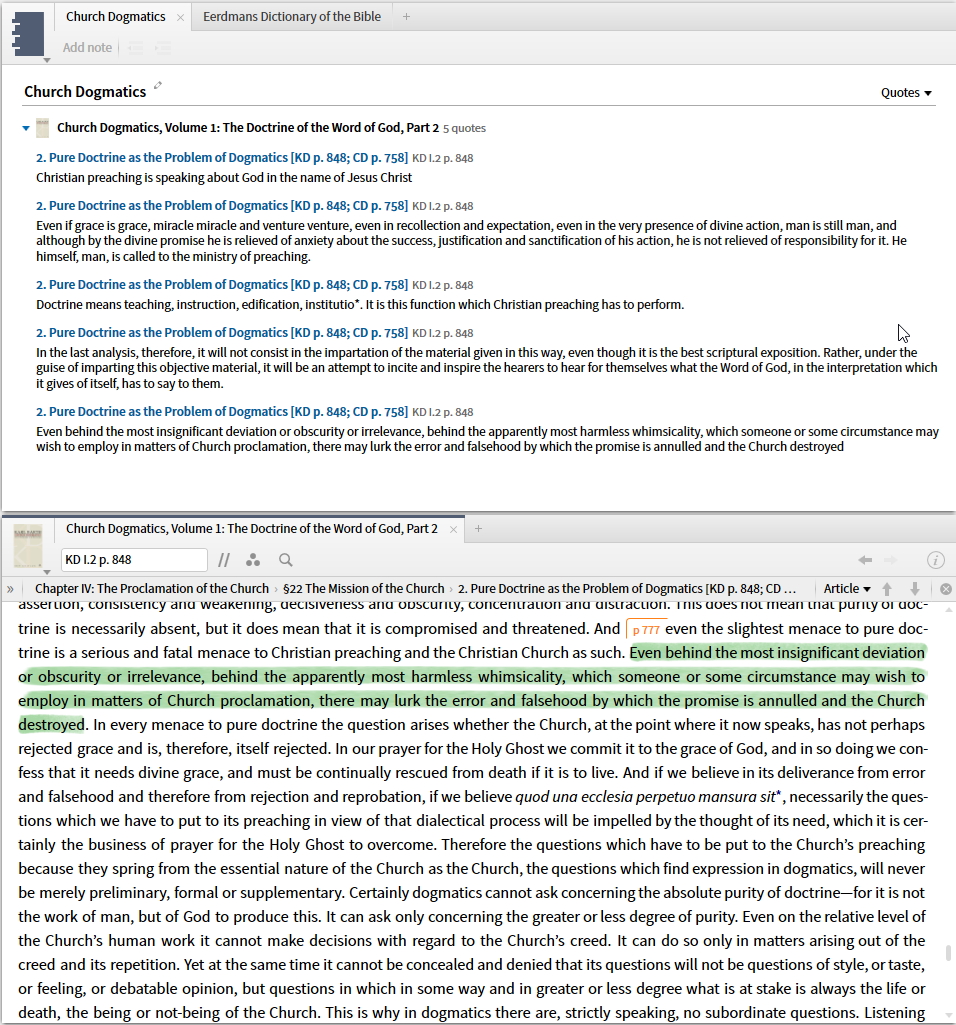 Yesterday I did some highlighting in Church Dogmatics on my iPad and when I look at the highlights and the resource on my desktop I see something strange about page numbers