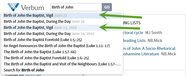 Okay, I know what Faithlife was attempting to do but it makes more sense to match the Lectionary (liturgical calendar) on the index portion rather than on the specific dates section. The current method causes each liturgical date to occur twice - once for 2015 and once for 2016 ....Note however, Year A, Year B and Year C would be expected for many liturgical dates.