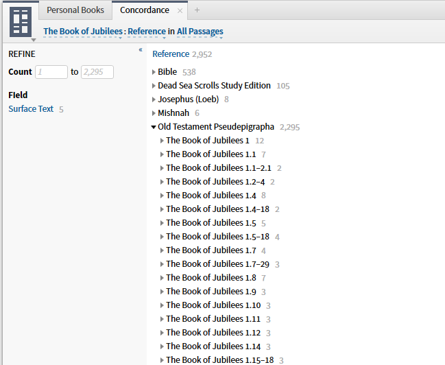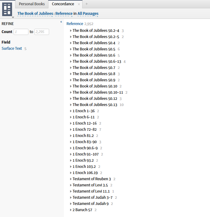 I ran a reference concordance on the Book of Jubilees and got cool results: