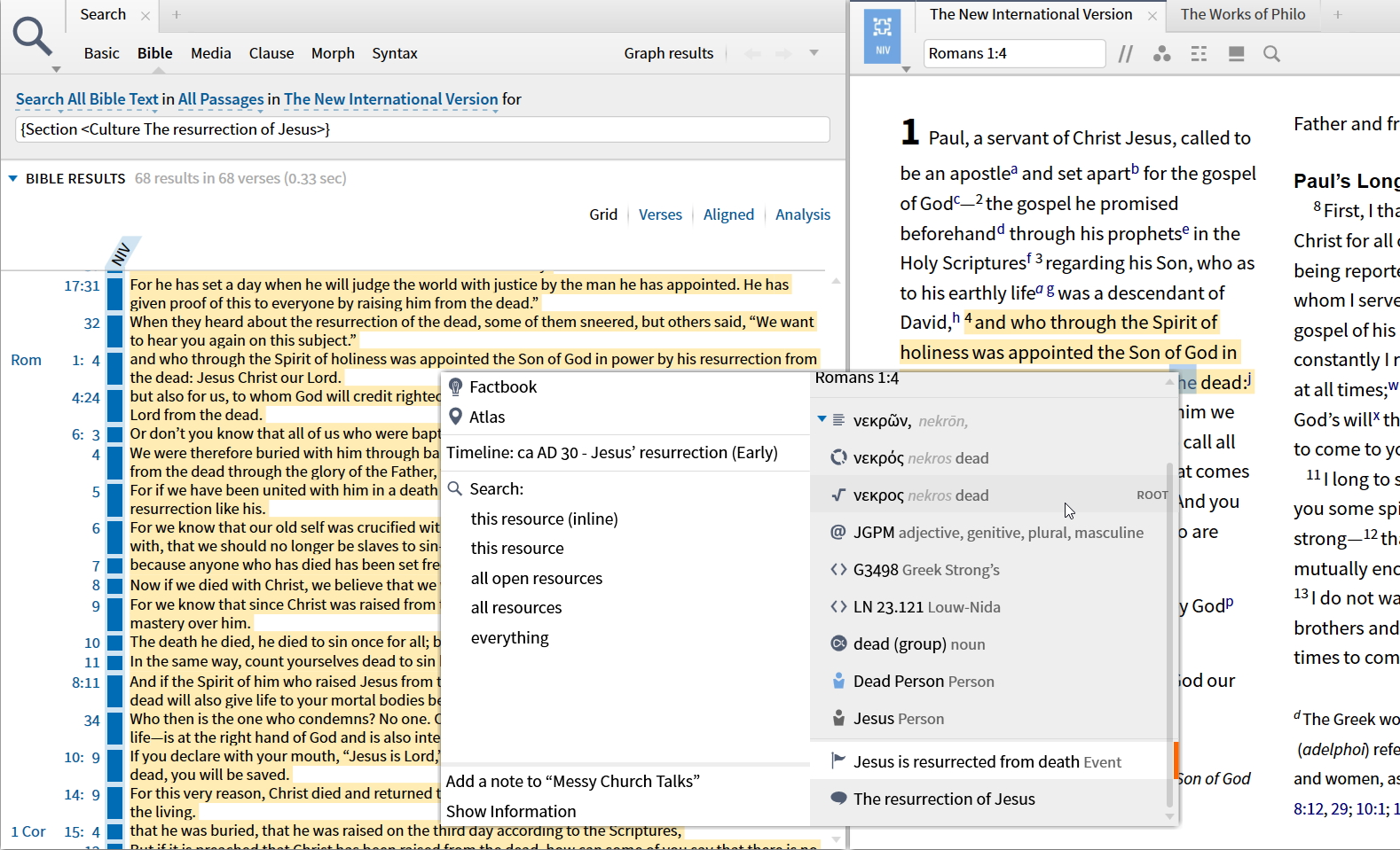 I thought it could be that the menu wasn't showing more than one concept but Romans 1:4 (which is included in the search results) doesn't show any concept tagging at all