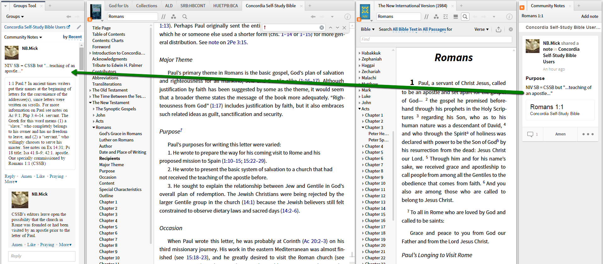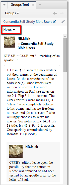 Using the groups tool (actually only looking into it. I commonly have a browser tab with faithlife.com open instead of this - I feel that's better use of screen real estate) I've come accross some quirks: