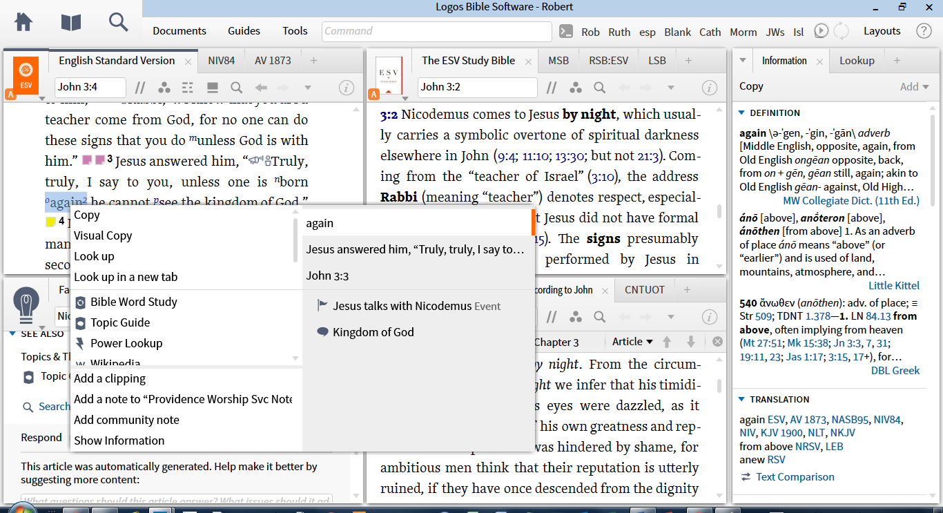 If I right-click on either "born" or "again" in John 3:3, none of the Greek elements display in the context menu: