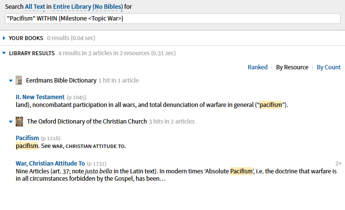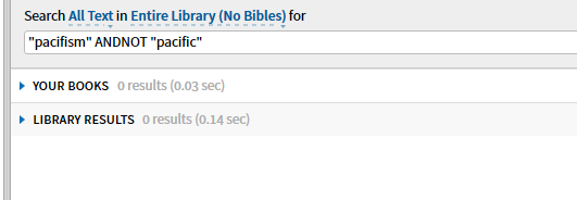 Why can't I narrow down the word pacifism? Shouldn't quotes around the word return only instances of the exact phrase?