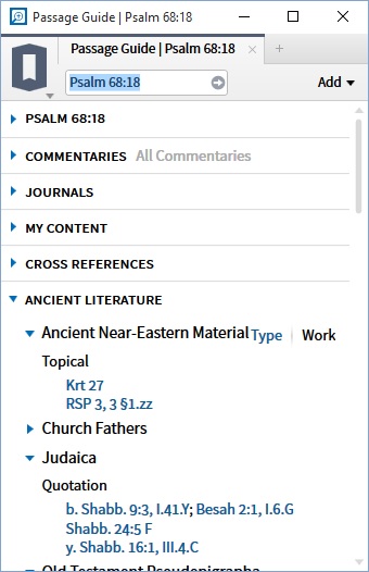 Under Judaica, it offers 4 quotations. The first and last are correct. The second is a quote of the following verse (Psa 68:19 in our English Bibles). The third is to “m. Sabb. 24:5 F” which doesn’t seem to have any connection at all.