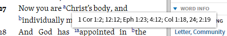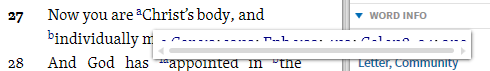 When I hover over reference 'a' in 1 Cor 12:27 (NASB95) I see the normal and expected popup: