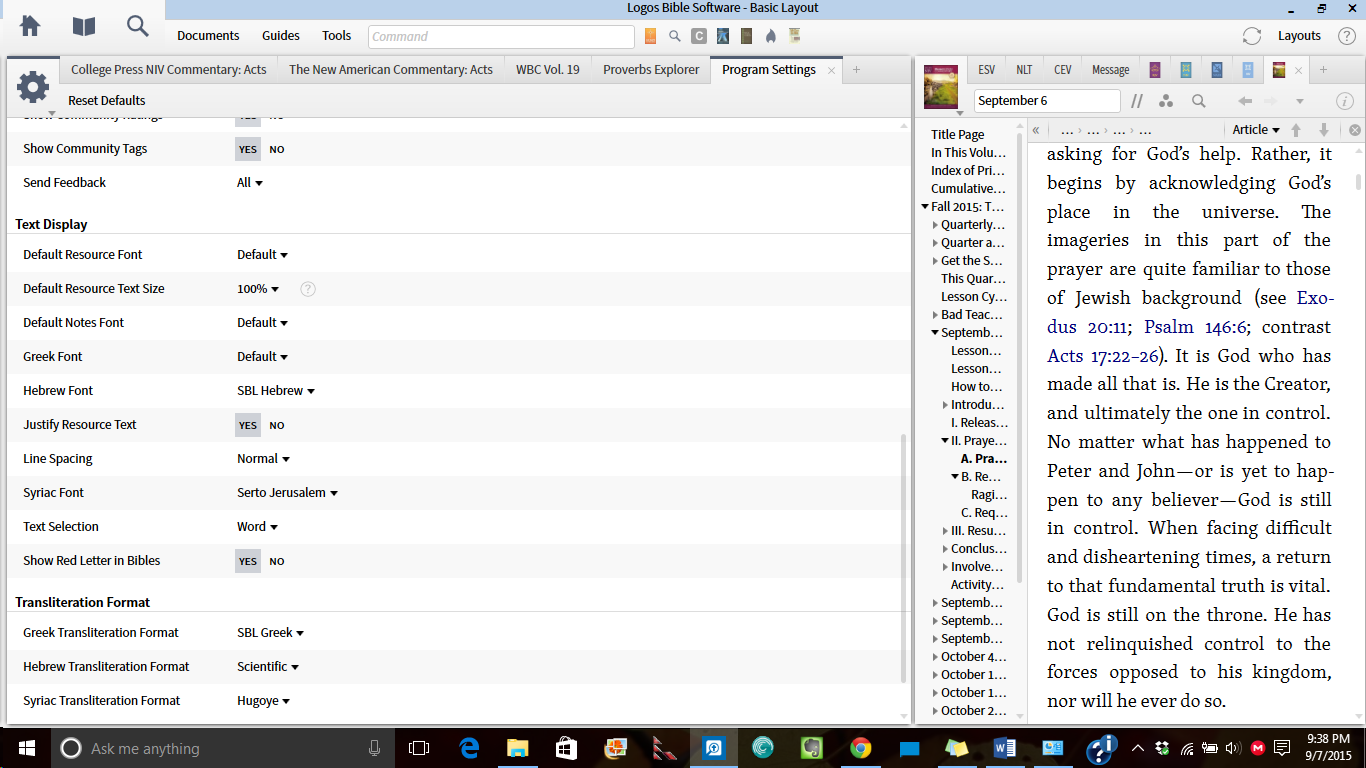 I have an odd font displaying in certain sections in Logos 6. It did not start doing this until I upgraded to Windows 10. I've searched for this problem but come up short. I visited Logos Program settings and made a couple of changes to default fonts, but no change. I have sense reset those changes. Attached are three screenshots of two resources and the Program settings screen.