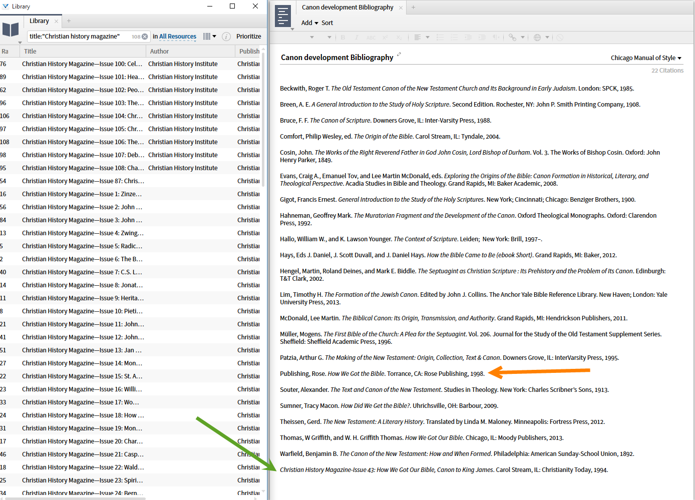 Because the author field is left blank in the early issues of the Christian History Magazine, they sort to the wrong position in a Bibliography. I would expect no author to sort to the top (with a dash for author) not to the bottom, or for the publisher to be listed as author as it is for the Rose Publishing item.