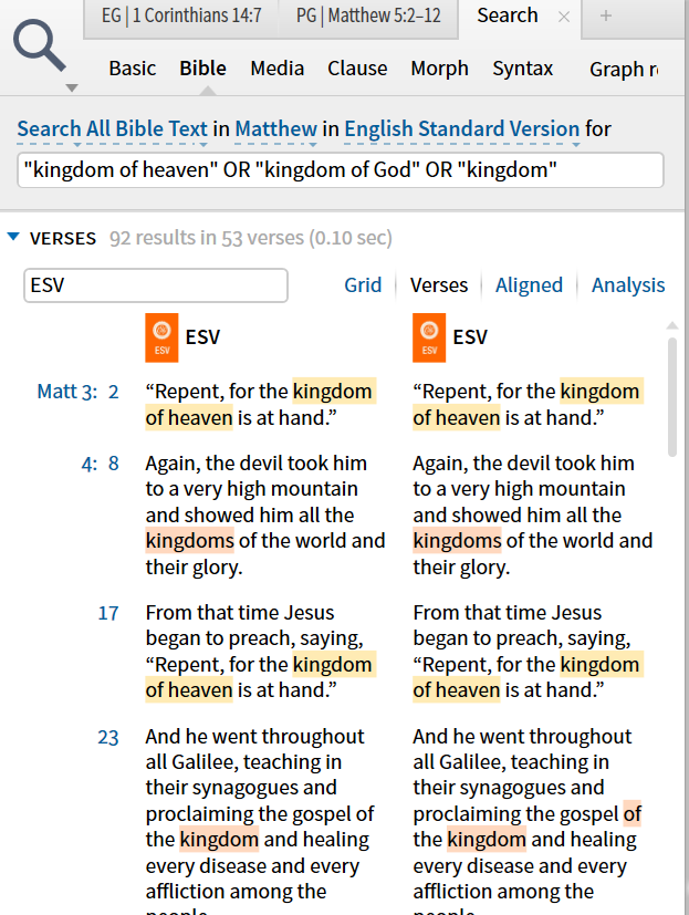 I remember somehow once doing a bible search in which I wanted to search two different bibles at the same time (ESV & KJV). I successfully achieved this (but don't remember how), and now I cannot figure out how to undo it. Just today, my search pane is now showing two columns of ESV bible searches side-by-side. It does this every time I search. I can't figure out how to change this. Help!