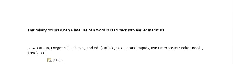 When I copy and paste from Logos into a Word document, the footnote created looks more like a bibliography entry with the author's last name first and so on.