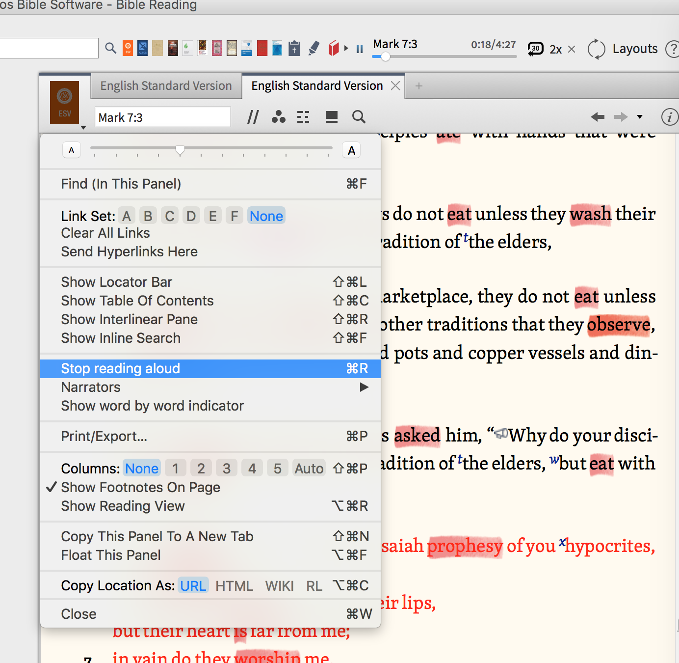 I was using the read aloud function at x2 speed, and after about 20-30 minutes, Logos crashed. This is very repeatable on my computer and has been crashing for the last 10 days (approximately).