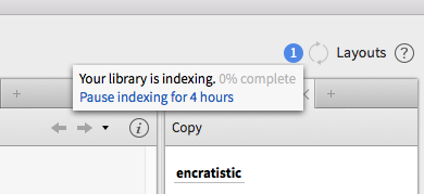 Edit - a restart cleared the 'Library Indexing' notification from the main screen but the 'Updating Library Catalogue' remains on the secondary monitor.