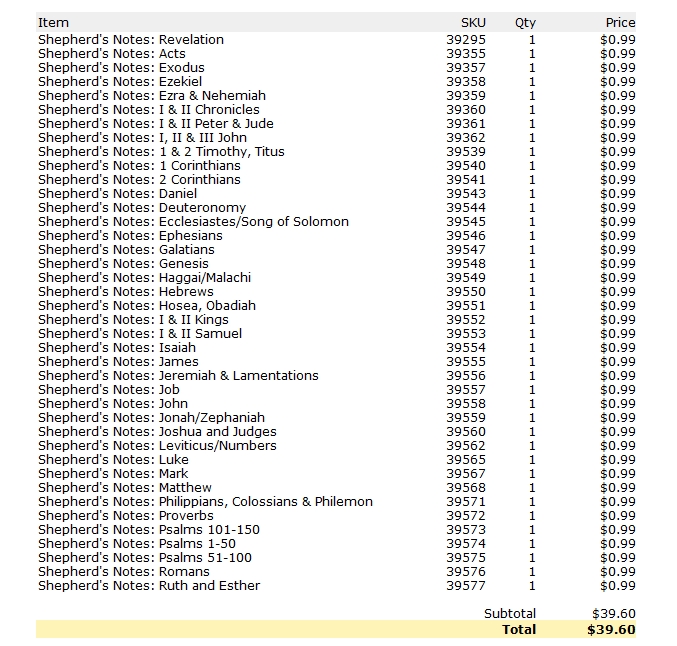 I got a Vyrso sale email this morning that said the Shepherds Notes are on sale for $.99, It did not say just the NT OT series, I clicked the button to "get them all" but no OT NT titles were added. Bummer. Maybe Sales could do a better job writing their ad copy next time.