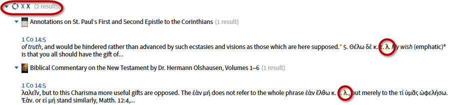 (5) I noticed that λ is getting placed under the lemma for Χ, rather than Λ. (Use 1 Cor 14:5 as a test if you need to find one.)