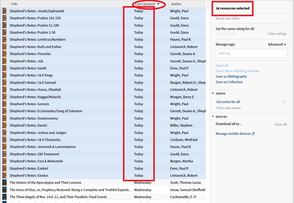 Verbum Windows 6.9 SR-1 - Picture one shows the resources that downloaded today, 24. The second picture shows the summary on the Home Page, only 23. I know that 24 is the correct number, I purchased the 24 Shepherd's Notes that were on sale for 99 cents each.