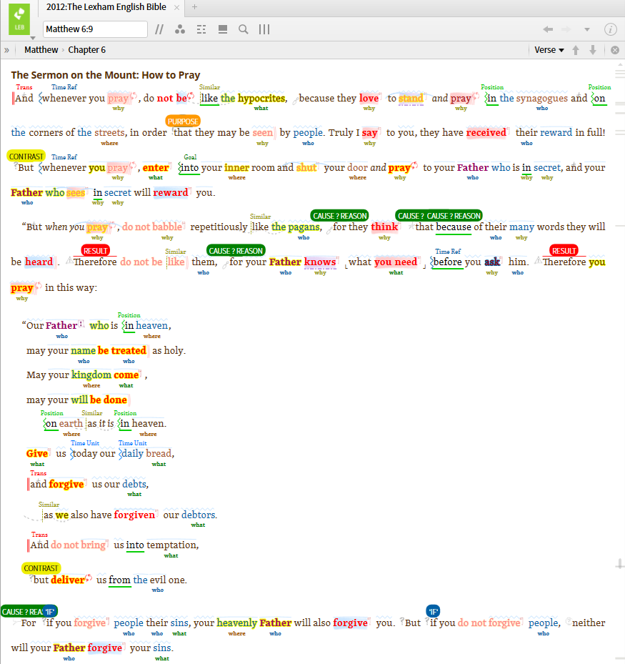 Thankful for Louw-Nida visual filters that can be enabled for discourse analysis: