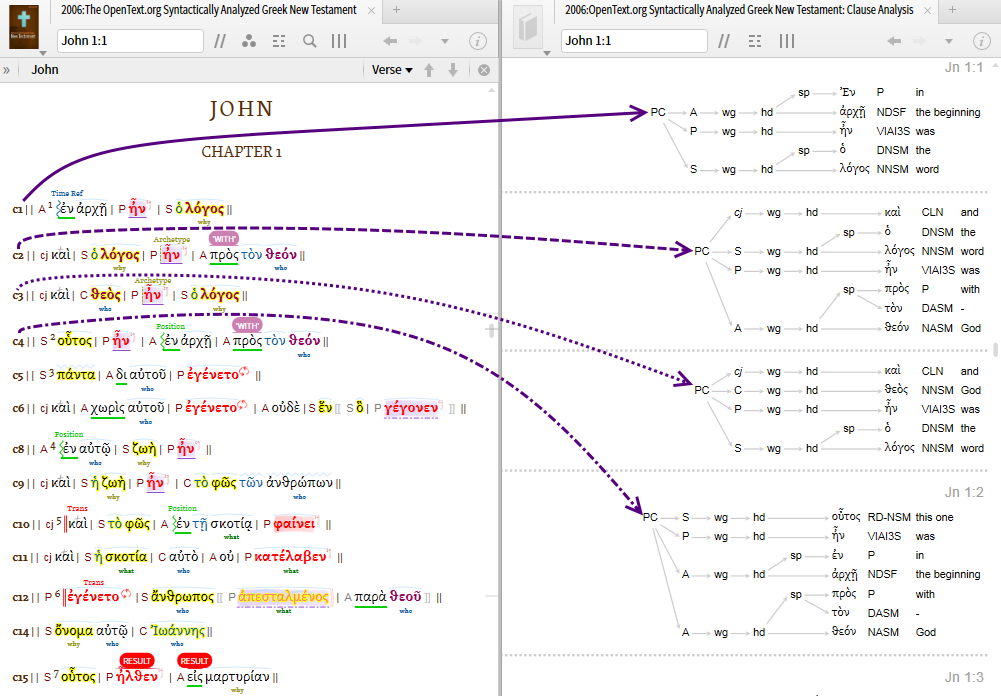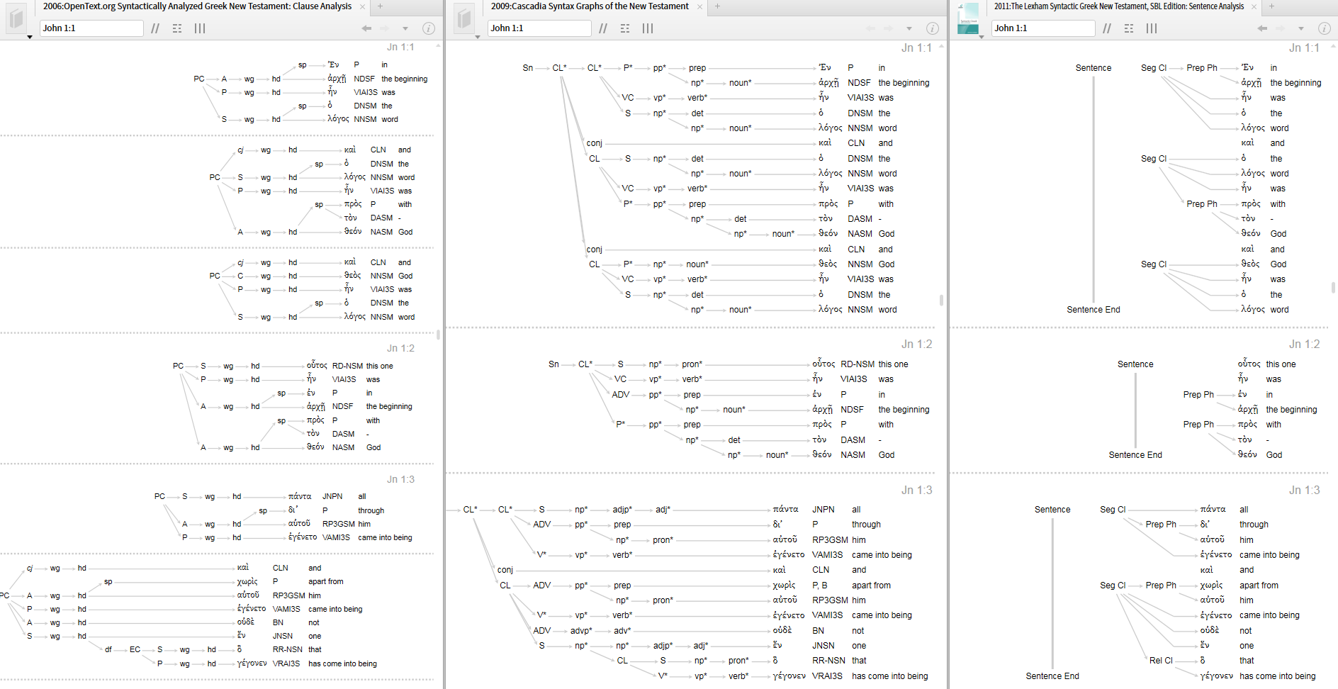 I thought I had a Greek NT that analyzed the text word for word similar to the "Te Hebrew Bible: Andersen-Forbes Phrase Marker Analysis" where each word appeared down the right with lines on the left showing the grammar structure, but I can't find anything like it. I don't remember the name and perhaps it no longer looks like that or has gone away. Any ideas that might help me?