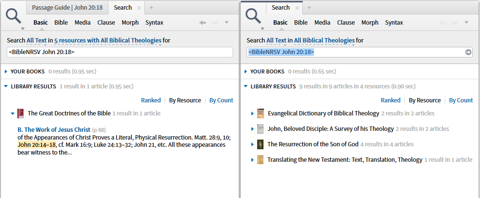 One of the best ways to learn to use the Search in Logos is to mimic searches built by Logos. However, Logos uses "built in" collections that are not available to the user. Please make them available in a way analogous to the Verbum pre-defined collections. An example of the problem - on the right is the Logos generated search, on the left is the failed attempt to replicate. The workaround requires that one brings up a Guide, one opens the section, initiates the Search then modify it to get what you really wanted ... not cool.