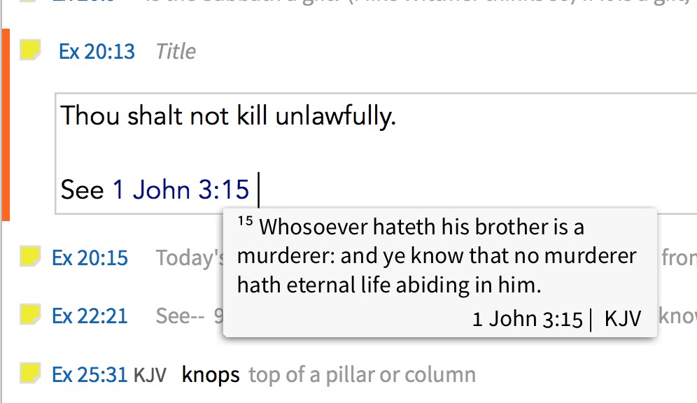 I would like to see a hyper link bible text from my notes to my preferred Bible.