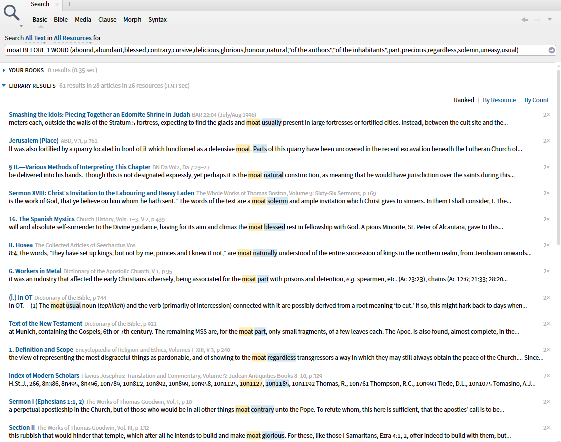 moat BEFORE 1 WORD (abound,abundant,blessed,contrary,cursive,delicious,glorious,honour,natural,"of the authors","of the inhabitants",part,precious,regardless,solemn,uneasy,usual)