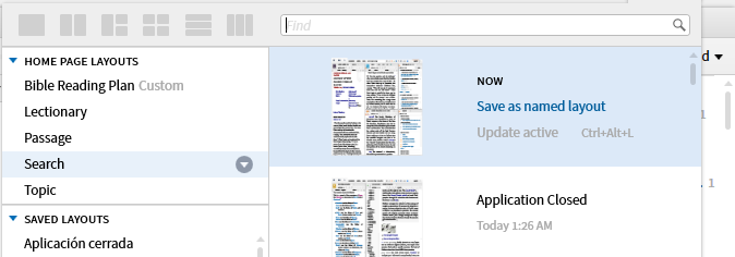 When I start to enter a passage reference, a list of relevant pericopes will appear. I may chose a pericope or enter a full reference. This will bring up a default layout positioned to that reference.