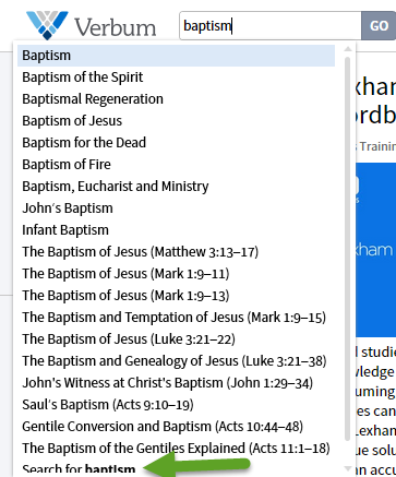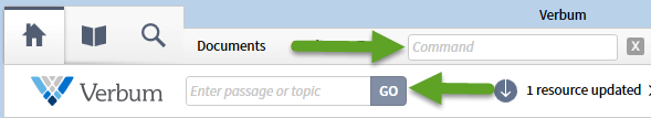 In the upper left of the toolbar, there is an input box with a “Go” button. Start here to get into using Logos quickly and easily.