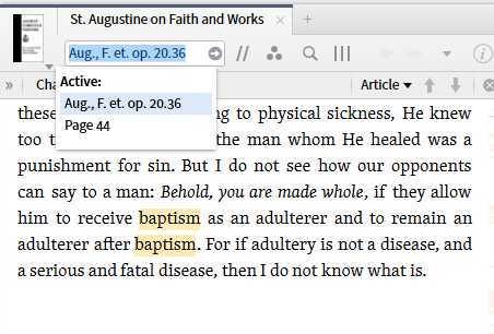 2. Every resource panel has a Location (reference) Box the contents of which varies from resource to resource ... it may be page numbers, head words, ... As you scroll up and down the resource the contents of this box will change to keep pace.