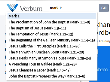 Type the passage, page number, dictionary word, etc. you want to navigate to in the resource and press Enter.