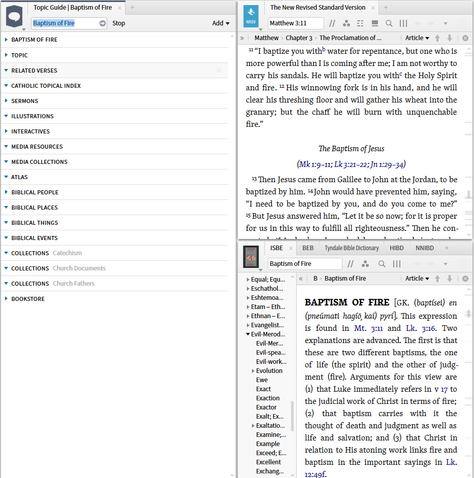 • The Bible Word Study Guide for wide-ranging information about the word in the Bible. Note that this won’t open if the topic you chose isn’t a Bible word.
