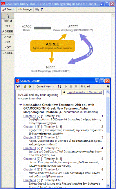 - the ability to mix clausal searches and syntax searches with the basic-Bible-morph searches