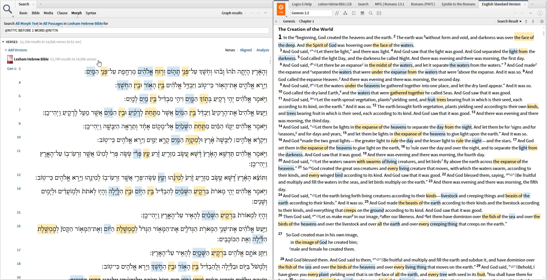 One of the features I appreciate of the "Corresponding Search Results" visual filter (available in the resource VF menu for Logos Now subscribers) is the ability to do an ordered search for words in Original Language texts and to then apply those results to RI-enabled translations. So even if the words aren't in the same relationship in the translations they are still visible. Example below: