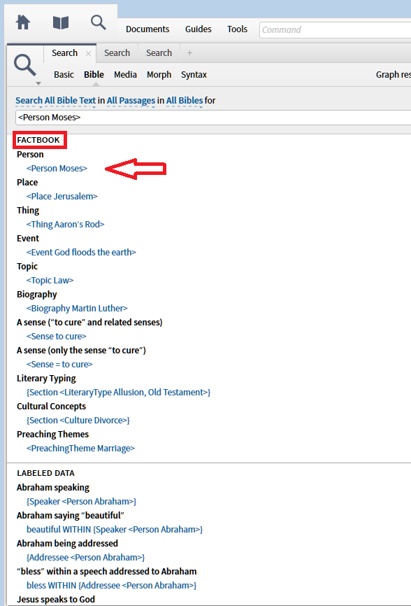 Bible search not giving any results when using the factbook queries (i.e <Person Moses>)