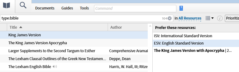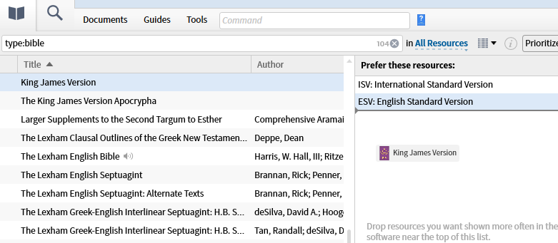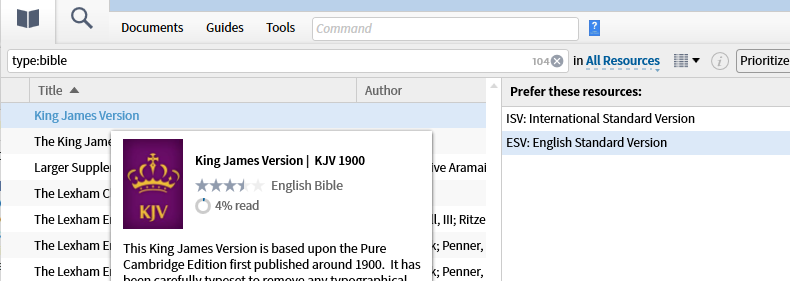When I try to select the KJV1900 bible for prioritization, I get the KJVapoc in the list instead.