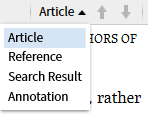 2. Choose the navigation option used by the up and down arrows on the right side of the locator bar. Options include: Article, Book, Chapter, Verse, Reference, Annotation, Filter Highlight, or Search Result. This list will vary depending on the resource, and the presence of highlighting, visual filters, or search results.