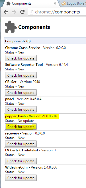 Component pepper_flash is Chrome's Flash Player; current release as of 15 Apr 2016 is 21.0.0.216