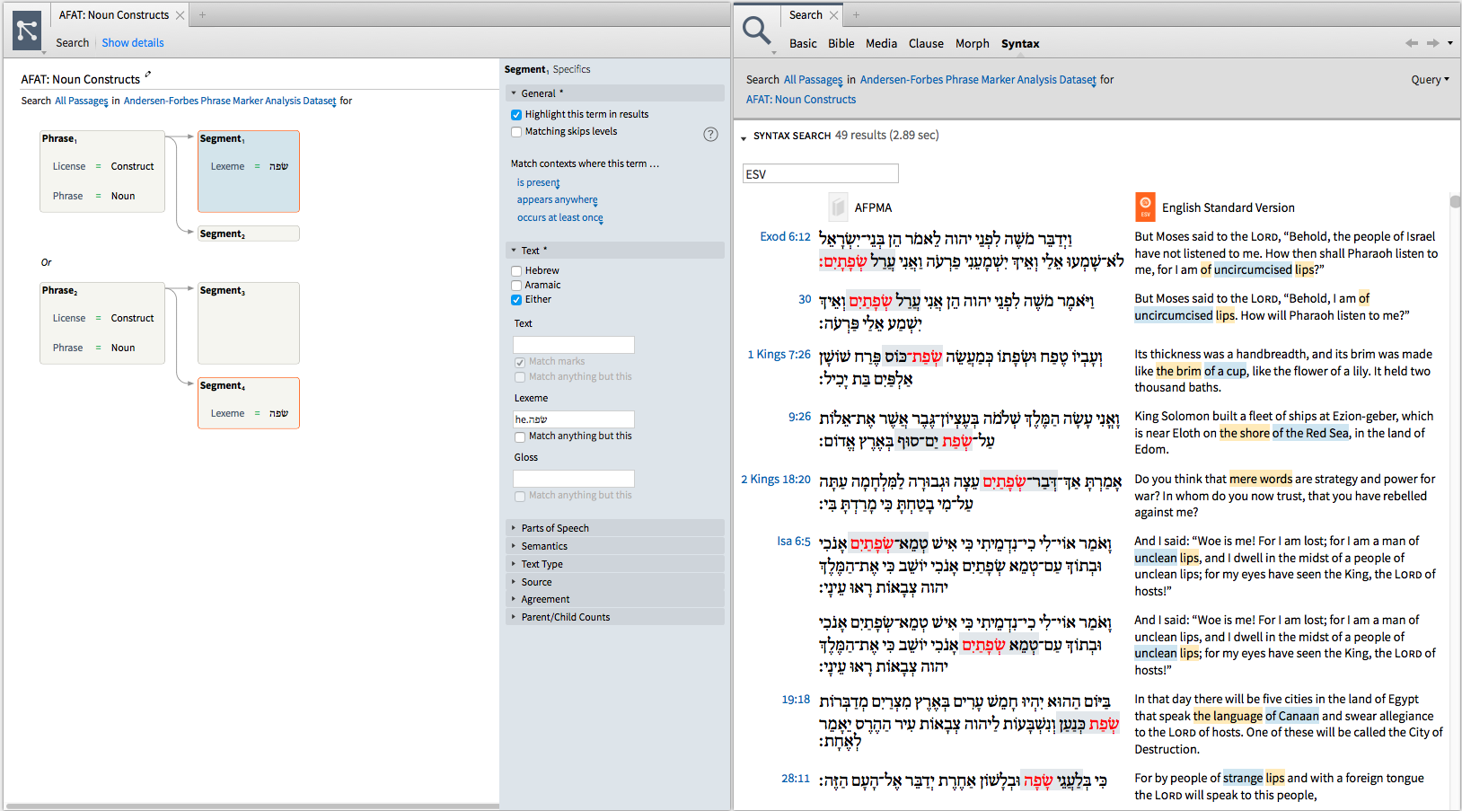 How do I find things like "deceit of lips" and "lips of deceit" that would be synonymous but in reverse-construct order?