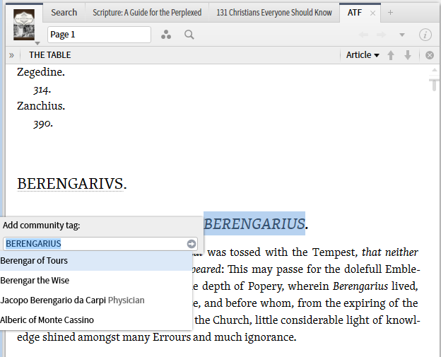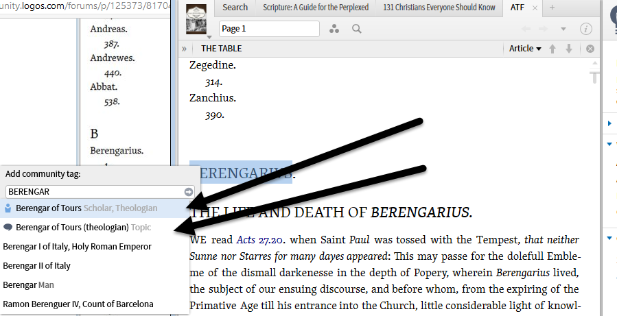 2. Oh wait ... there is a higher title where I should have put it ... no match for this spelling so I have to start removing letters from the back .. What do you mean Logos has 2 records for Berengar of Tours ..