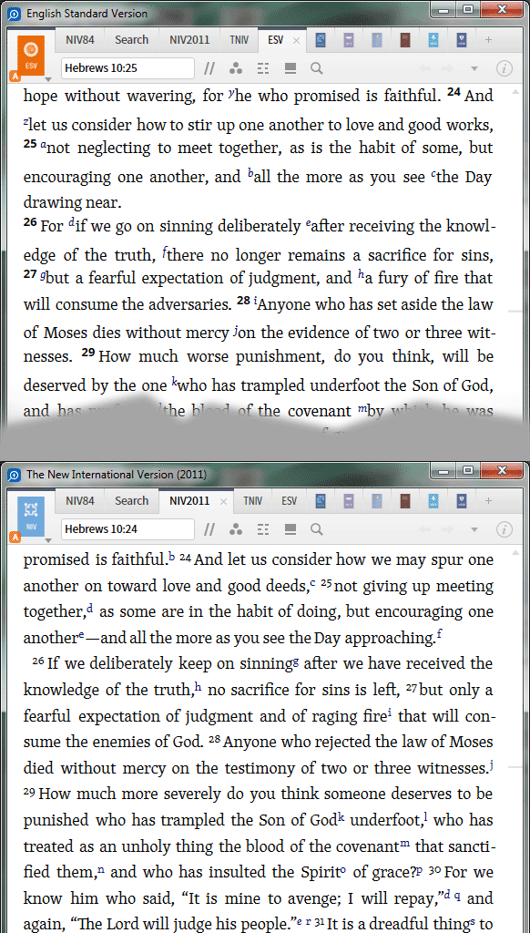 In the attached example, it can be seen that any line with a verse number in it has a larger spacing after it than any lines without a verse number. The ESV Bible seems to be the only resource that demonstrates this behaviour, as seen in the NIV comparison in the attached screenshot.