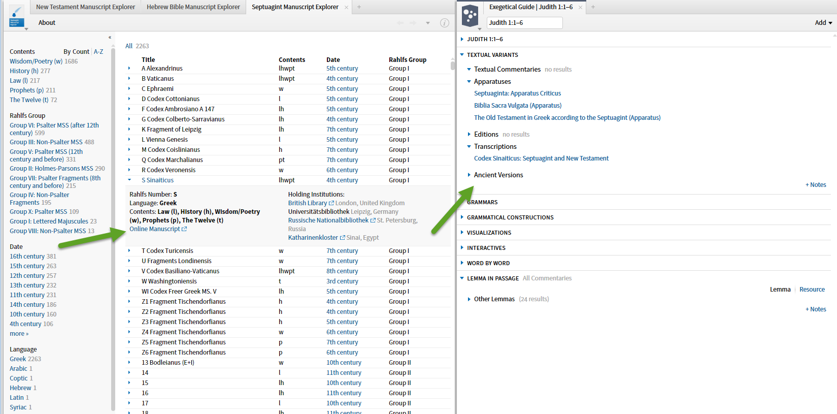 The NT Greek online manuscripts can be accessed via Textual Variants and the Interactive; Deuterocanon Greek online manuscripts can be accessed only via the Interactive. Shouldn't they also be available via Textual Variants?