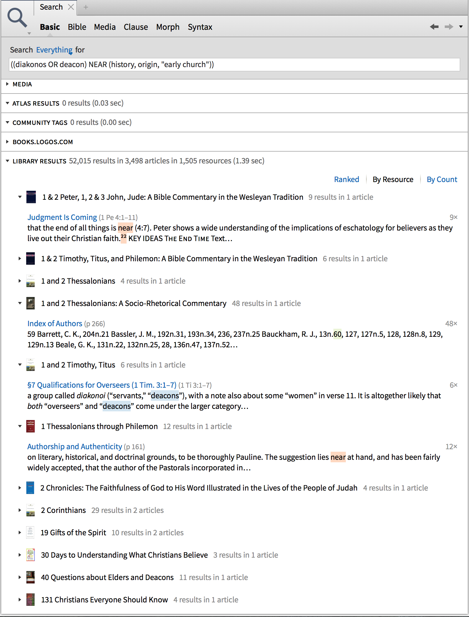 Im getting tons of results (1000s). Most have the word "near" in them, or have ONLY ONE of the words above. Very few results give me "deacon" NEAR "history".