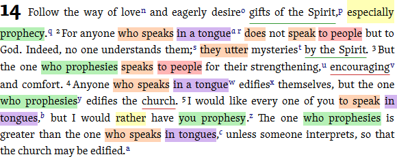 Here's what the start of 1 Corinthians 14 might look like:
