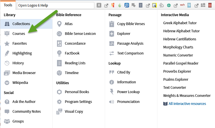 Or one can access the Course Tool from the Tools Menu: