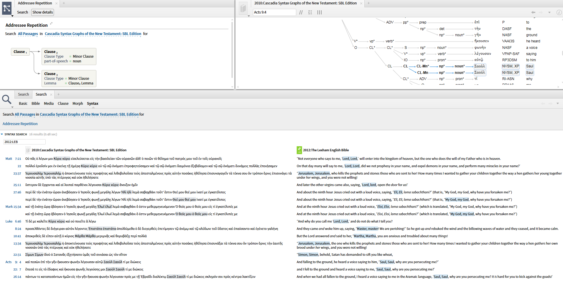 Greek Lexham Syntactic that includes Acts 9:4