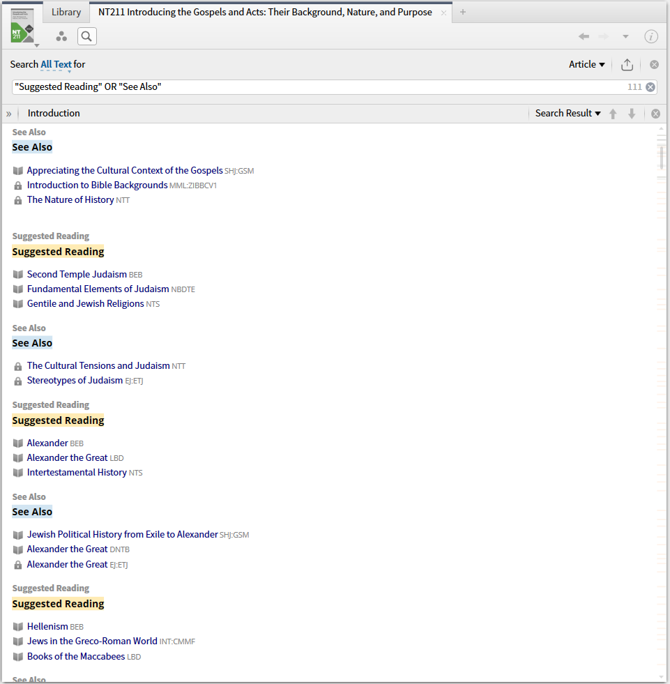 Regarding the "suggested reading" and "see also" books, the courses I've seen so far don't interact with these, so there is no strong emphasis on selling those. Each course has a Faithlife group which shares a note file for these additional readings and a spreadsheet giving the names of those resources and how often each are referenced. Often, they give three or four suggestions that treat the same material, but one wouldn't need to have all of them.