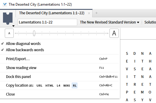 34. The Word Puzzle document has two Panel Menu functions specific to it: The first is to Allow diagonal words.
