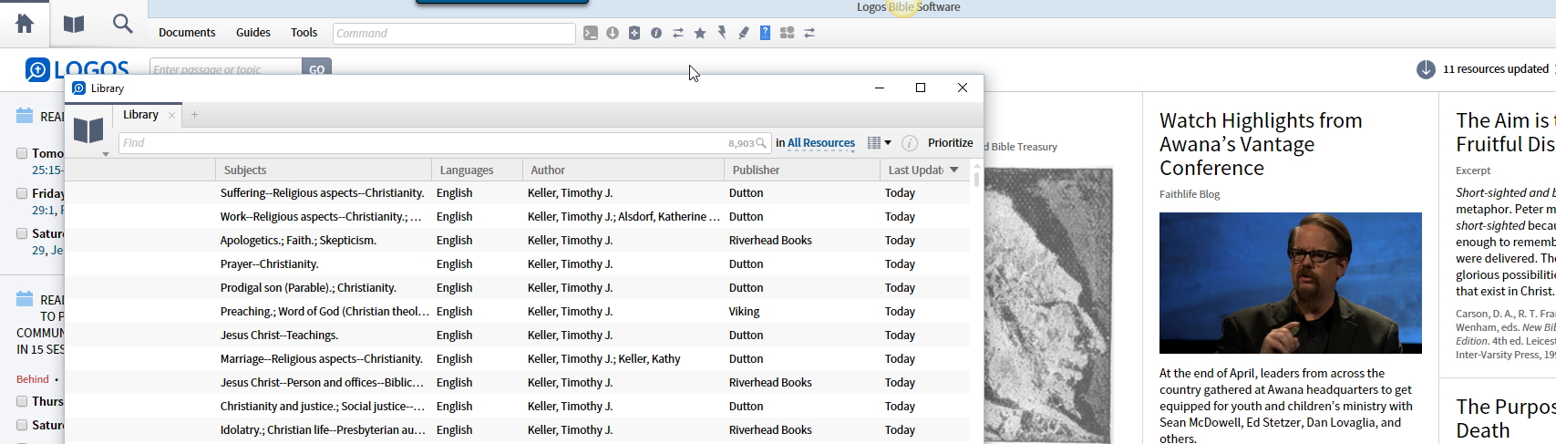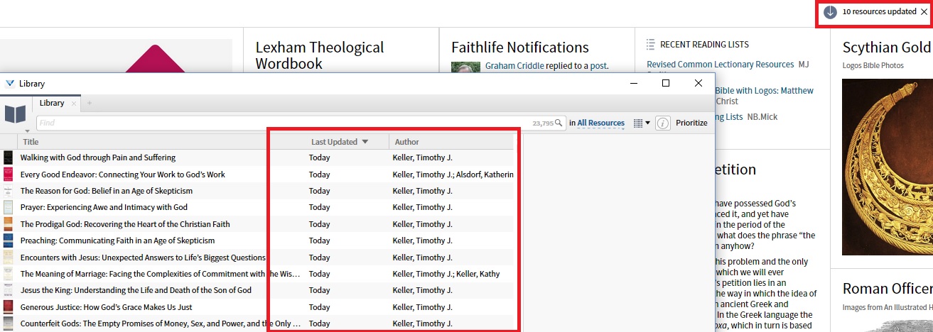 Verbum 6.12 beta 3 - see picture. Tim Keller collection downloaded today, 11 resources added to library but count on home page says 10. Waited until even indexing was completed, no change.