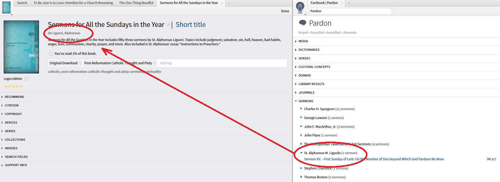 See picture, in the Factbook search results St. Alphonsus Liguori's name is spelled wrong! Not sure where it is getting this from, it's correct in the Author metadata in the library too? I am hoping it can get fixed as missing an author's name will mess up searches...